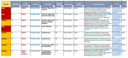 Conference coverage in the Rheumatoid therapy area helped the client with key scientific insights on competitor assets. This supported client’s R&D team to strategize development approach of their asset